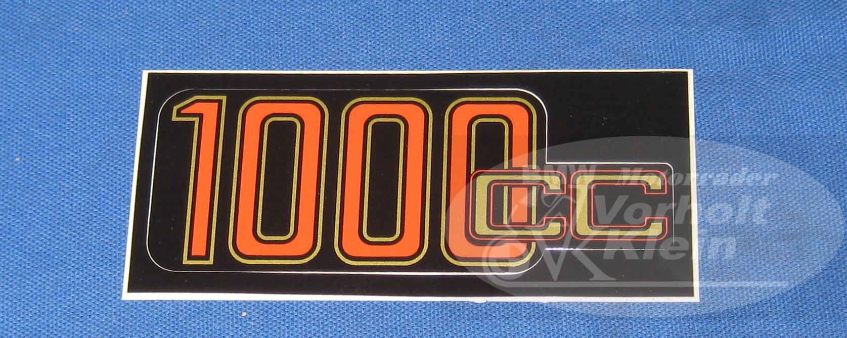 Aufkleber 1000 cc in roter Schrift mit goldener Umrandung,