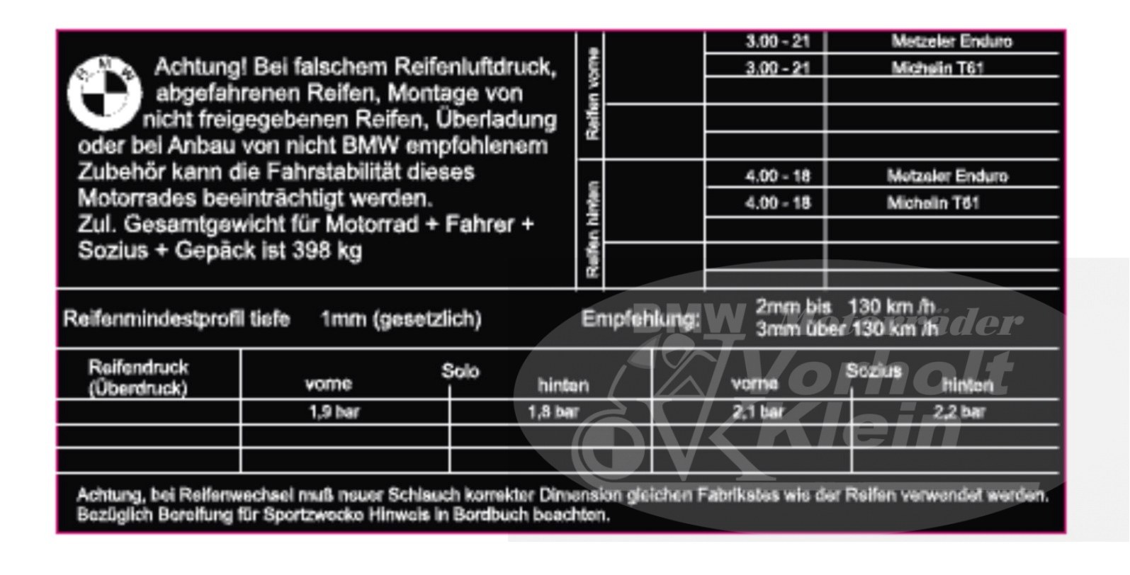 +++ R80G/S R65G/S bis R80ST - Hinweisschild Reifenluftdruck G/S - präzise gefertigte Komponente für eine ordnungsgemäße BMW Montage. - Vergleichsnummer: 1242484. +++
